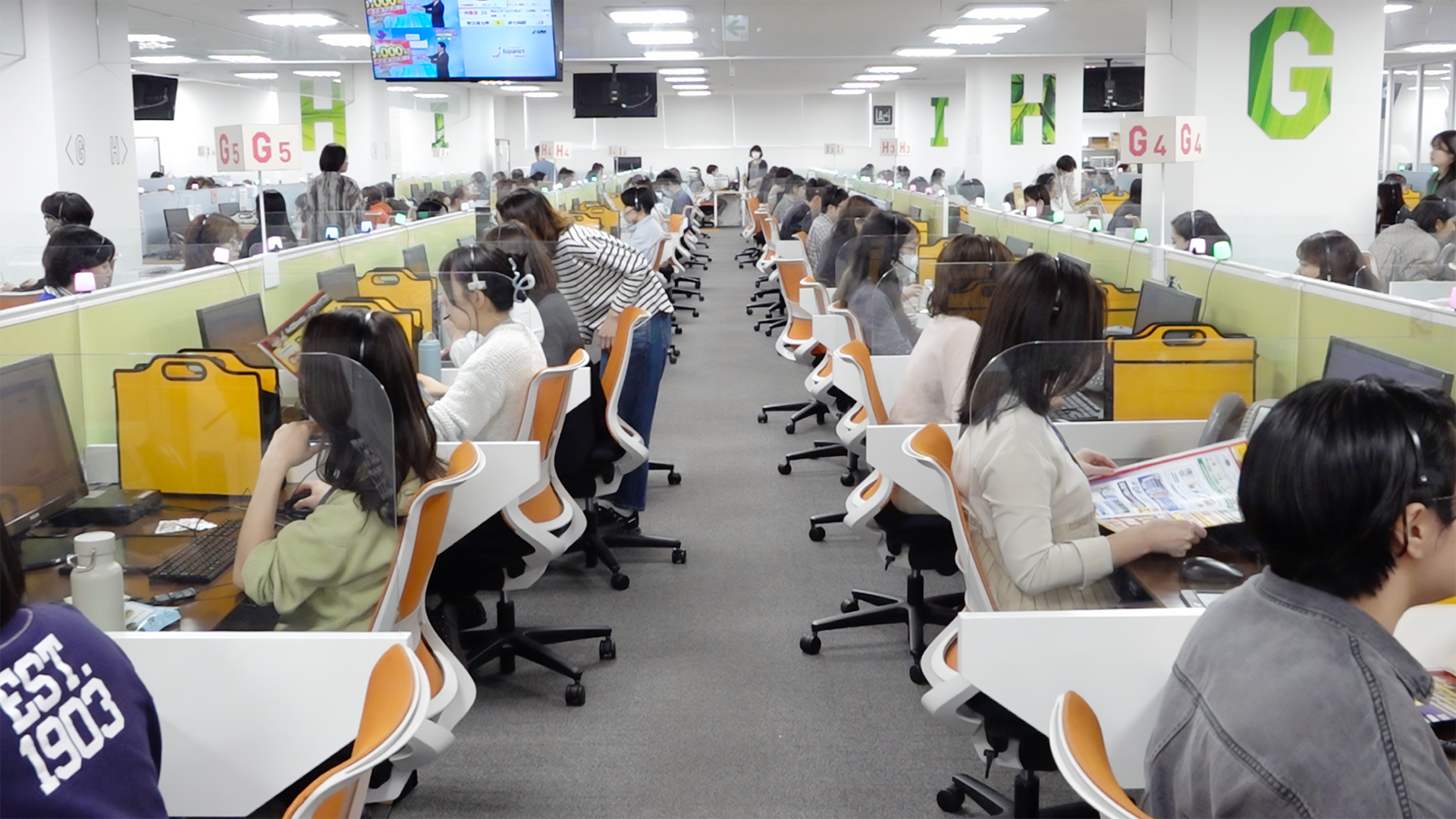 ここは博多拠点だけで約600席あるんです。普段は300〜400人くらいですが、「チャレンジデー」というジャパネットが厳選した商品を特別な価格で提供する日やキャンペーンの最終日は、この600席が朝から全てびっしりと埋まるんですよ。