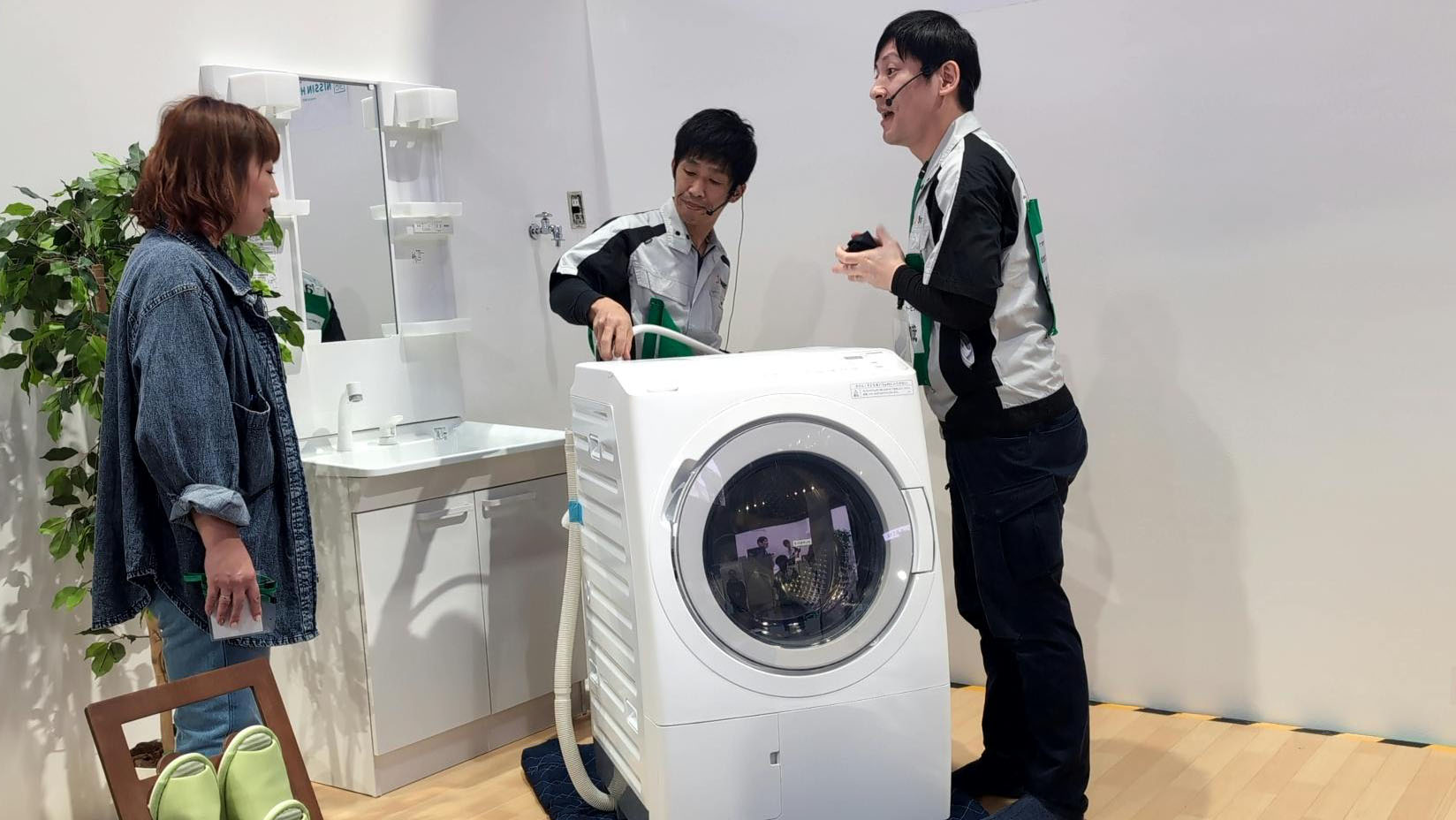 大型配送部門では、「ドラム式洗濯機の設置」。 三方を壁に囲まれた極小スペースに重量のあるドラム式を設置するという、物理的な限界に近いシチュエーションです。