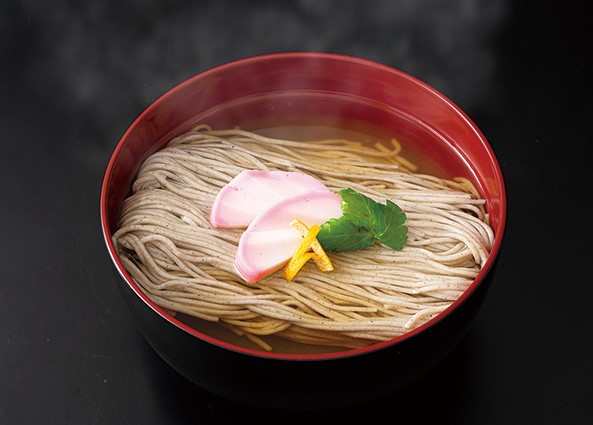 同梱物:年越しそば(4人前)、お品書きリーフレット、祝箸4膳セット